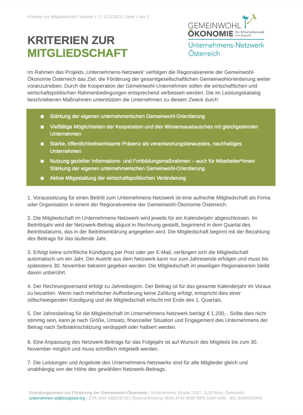 Voraussetzung für einen Beitritt zum Unternehmens-Netzwerk ist eine aufrechte Mitgliedschaft als Firma oder Organisation in einem der Regionalvereine der Gemeinwohl-Ökonomie Österreich. Sollte noch keine Mitgliedschaft bestehen, kann diese hier beantragt werden.